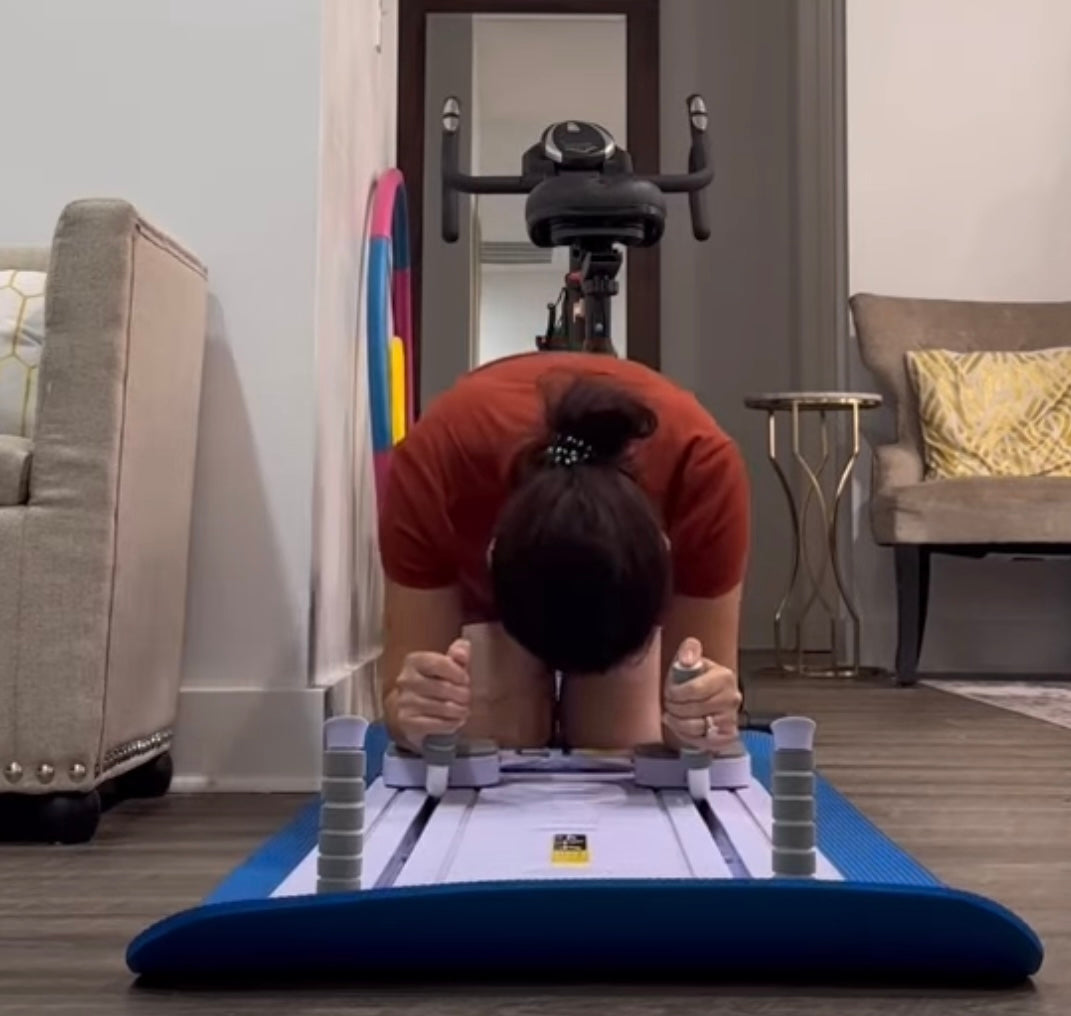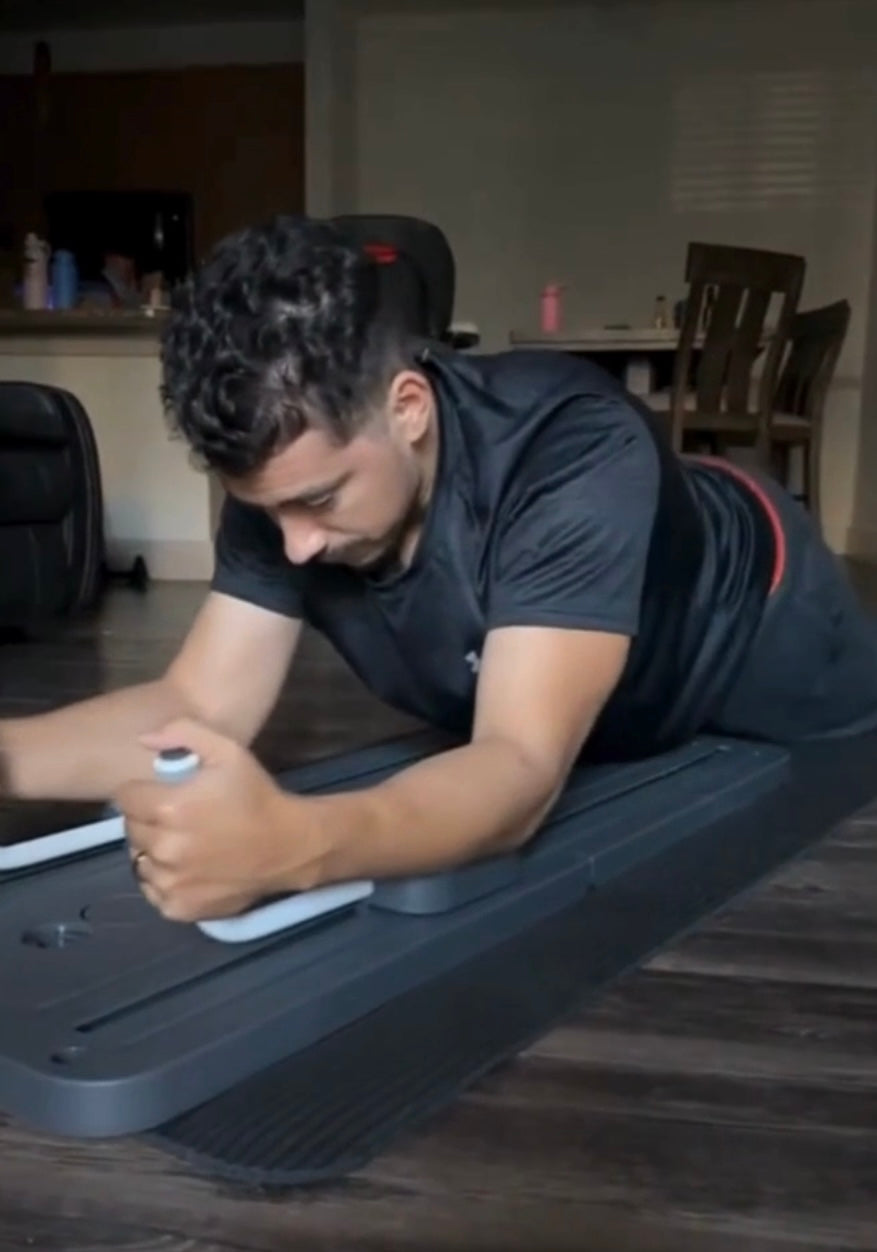 2. Schiebe das BodyBoard mit der Kraft deiner Muskulatur nach vorne und spanne deine Bauchmuskeln beim zurückschieben an.